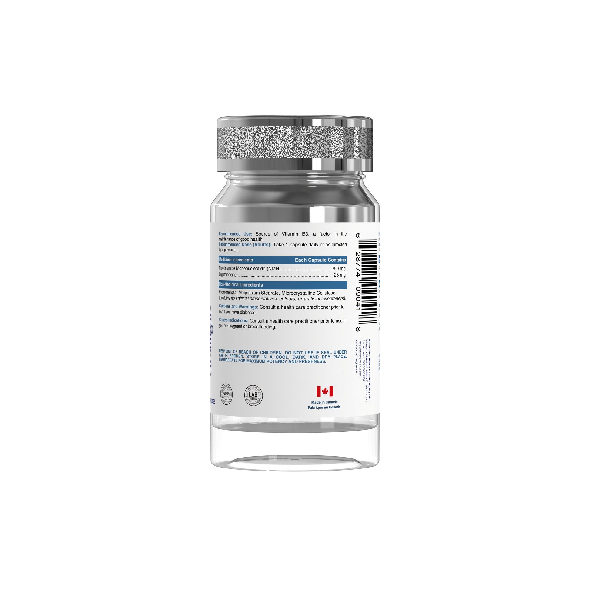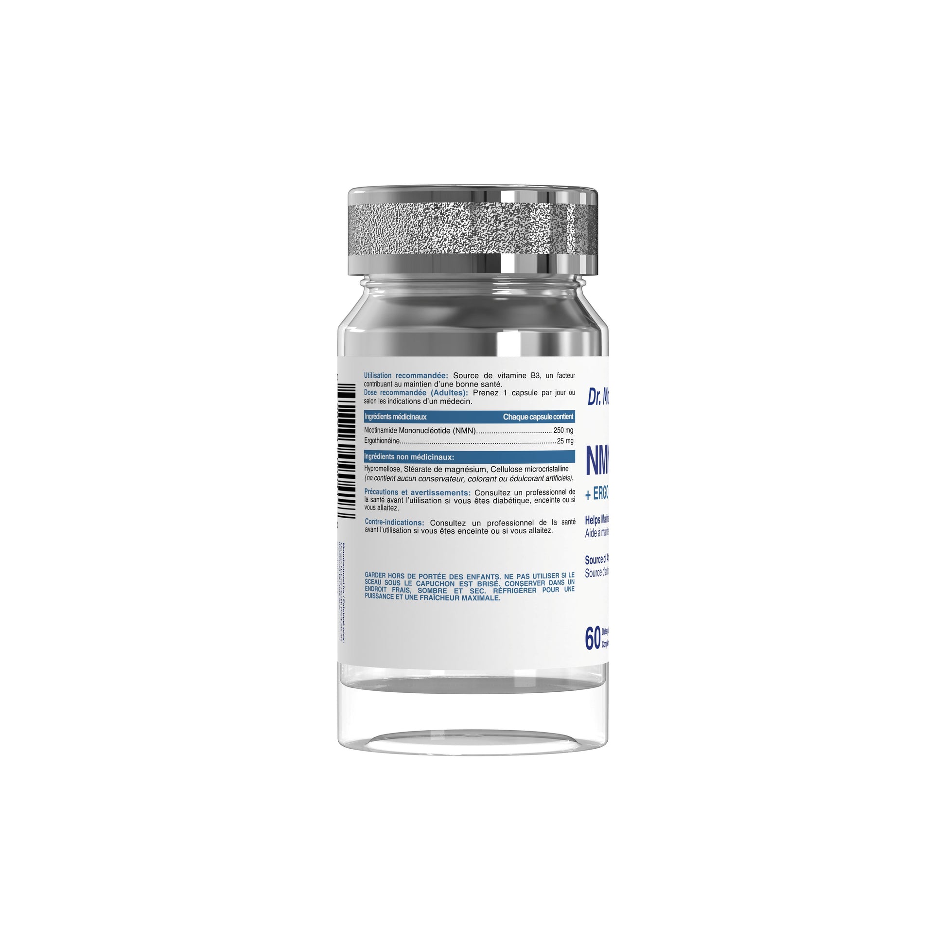 Dr. Morgan™ NMN15000 + ERGO is a nutritional supplement designed to support cellular health and antioxidant defense. Each capsule delivers 250 mg of Nicotinamide Mononucleotide (NMN) and 25 mg of Ergothioneine, formulated for those seeking daily nutritional support for healthy aging, energy metabolism, and oxidative stress response. Licensed by Health Canada with a Natural Product Number (NPN).