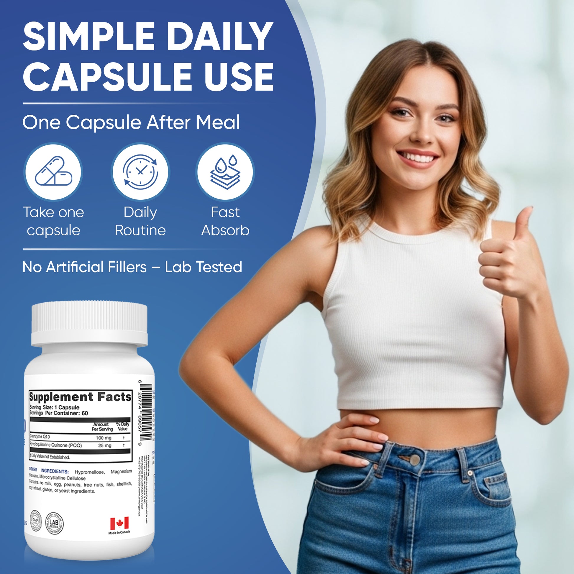 3. Mitochondrial Biogenesis and Energy Boost: PQQ and CoQ10 work together to promote mitochondrial biogenesis and increase ATP energy production, boosting cellular vitality and overall energy levels.
