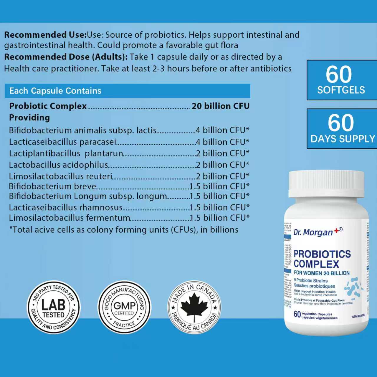Total Probiotic Count: 20 Billion CFU at time of manufacture